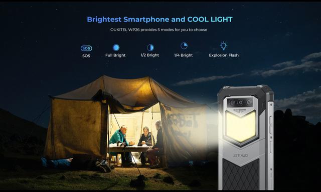 На задній панелі розташований найпотужніший фонарь, який Ви могли бачити в смартфоні, з яскравістю 1200 люменів. Він пропонує 5 режимів освітлення: SOS, максимальна яскравість, середня яскравість, чверть яскравості та вибухове світло. Нехай Oukitel WP26 стане вашим надійним супутником у будь-яких умовах і надасть Вам вражаюче та потужне освітлення у будь-якій ситуації!