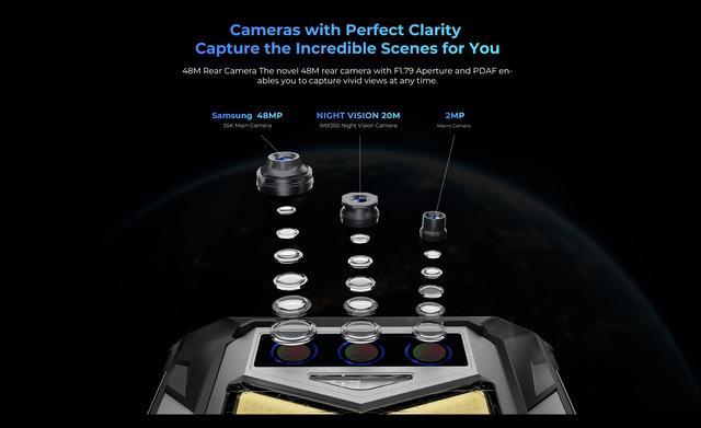 Що стосується фотографії, смартфон Oukitel WP26 поєднує високороздільну камеру на 48 МП, камеру нічного бачення на 20 МП та макрооб'єктив на 2 МП. Результат? Деталізовані фотографії вдень, вночі та з відстані всього кількох сантиметрів до об'єкта. Окремої уваги заслуговує якісна 48-мегапіксельна матриця основної камери від Samsung, завдяки якій смартфон здатен знімати відео з роздільною здатністю 4K (3840x2160). З фазовим автофокусуванням камера може швидко фокусуватися на рухомих об'єктах, щоб любителі зовнішніх видів спорту могли знімати захоплюючі відео.